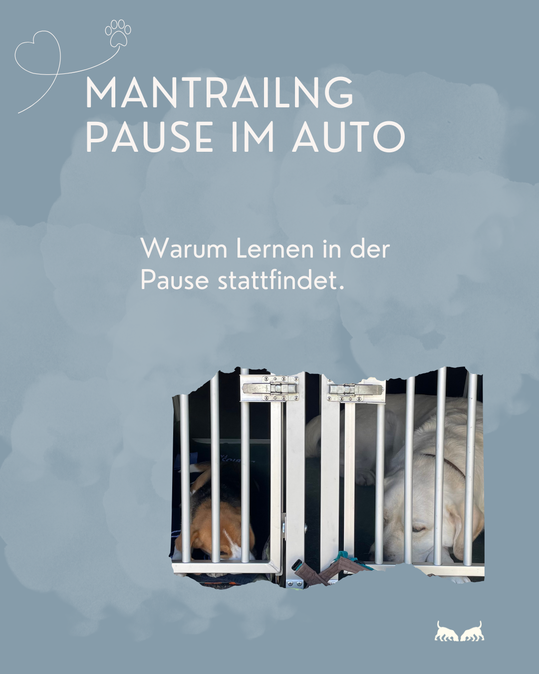 Ebenso wichtig ist die Erholungsphase nach dem Trail. Lernen kann nur stattfinden, wenn der Hund Erlebtes in Ruhe verarbeiten darf. Deshalb sehen wir das Auto als unverzichtbaren Rückzugsort im Mantrailing: Es bietet dem Hund einen geschützten Raum, in dem er abschalten, regenerieren und das Gelernte festigen kann.